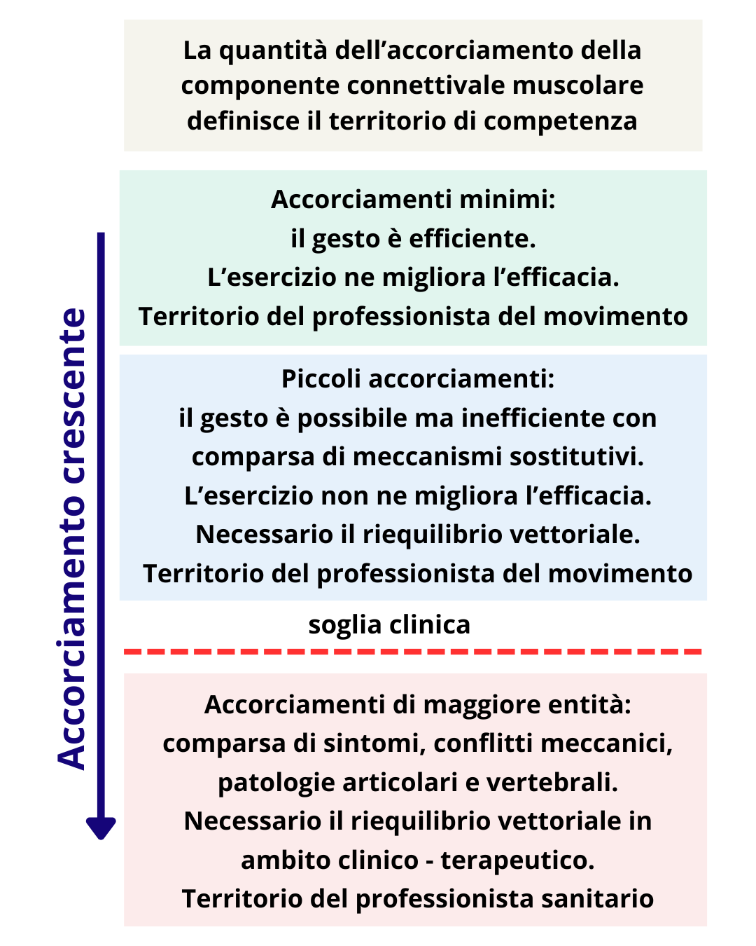 Nel tempo, questo accumulo produce un accorciamento progressivo del muscolo. Non è una patologia. È fisica applicata ai tessuti biologici.